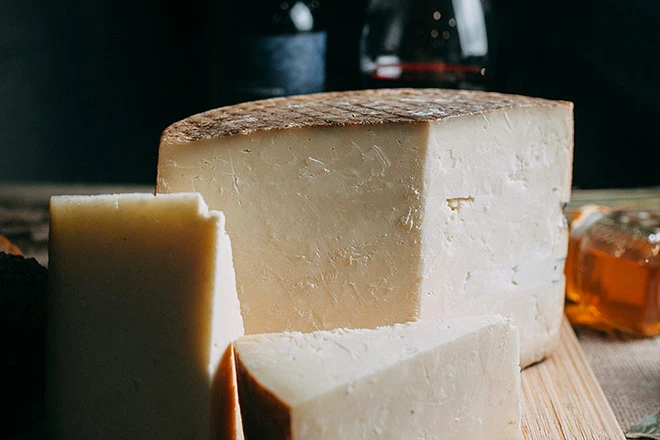 Сыр с гладкой маслянистой текстурой, нежного бело-сливочного цвета с натуральной светло-коричневой корочкой.