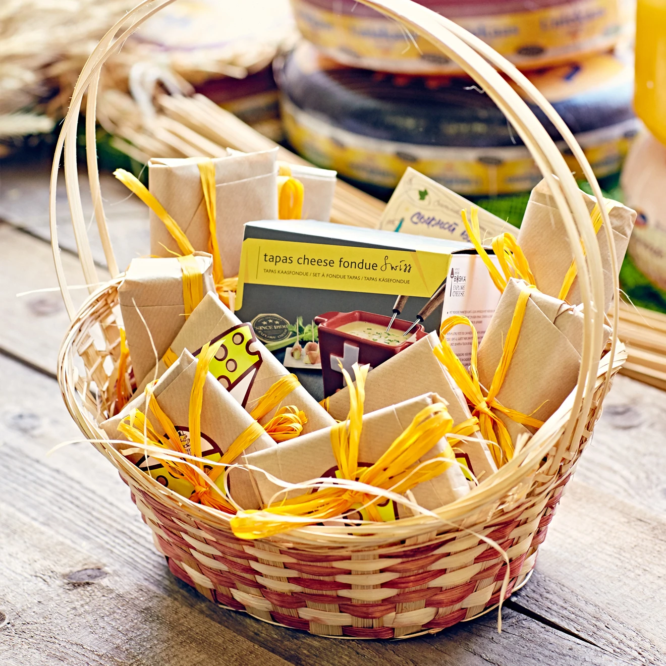 В этой корзине мы собрали самые разные виды отборных сыров из Швейцарии: