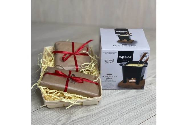 Подарочный набор с двумя видами сыров и декоративной деревянной доской